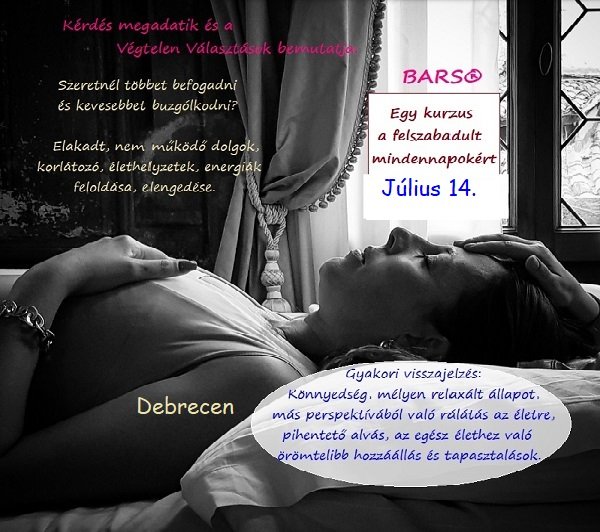 Ha szeretnéd és választod, könnyedén leteheted a korlátozó nézőpontjaid, különböző életterületek elakadásait, blokkjait. Miközben ellazultan fekszel és befogadsz. Megengeded, hogy a kezelő Barst ajándékozzon Neked.